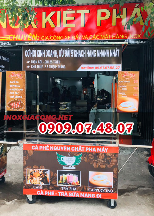 Mẫu xe đẩy bán cà phê mang đi ấn tượng của Inox Kiệt Phát